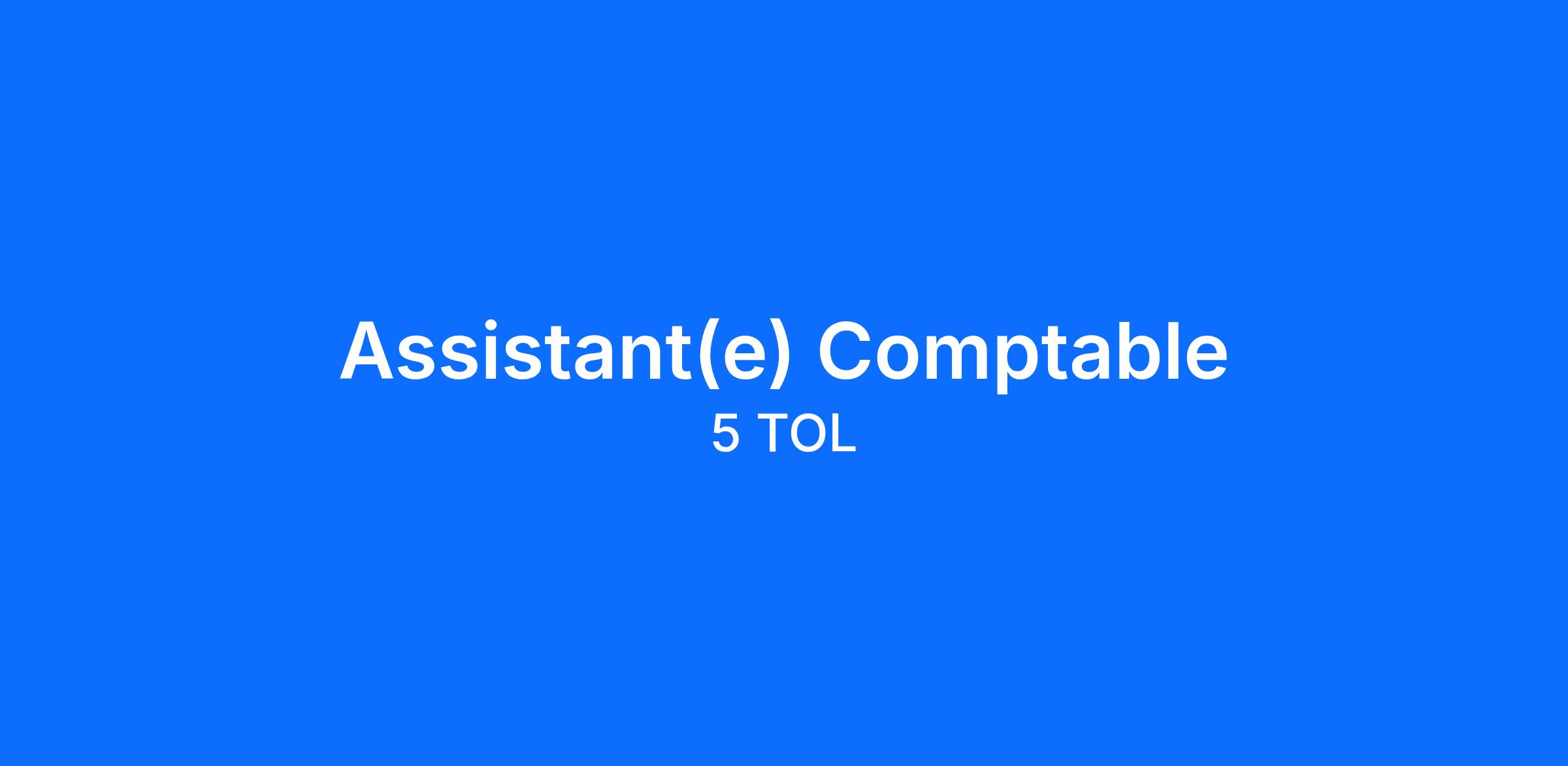 Dans le cadre du renforcement de ses activités et de son équipe 5 TOL recrute un(e) Assistant(e) Comptable.
