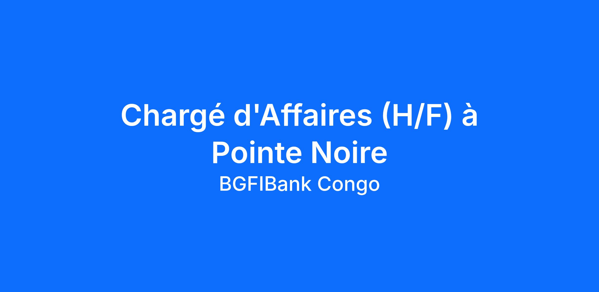 Dans le cadre du renforcement des équipes commerciales, la Direction de la banque de Financement lance un appel à candidatures pour le recrutement de 2 chargés d’Affaires à Pointe Noire.